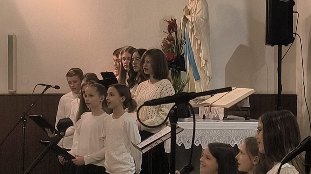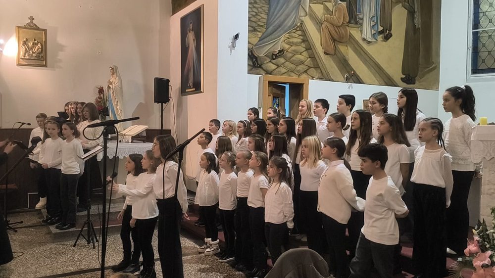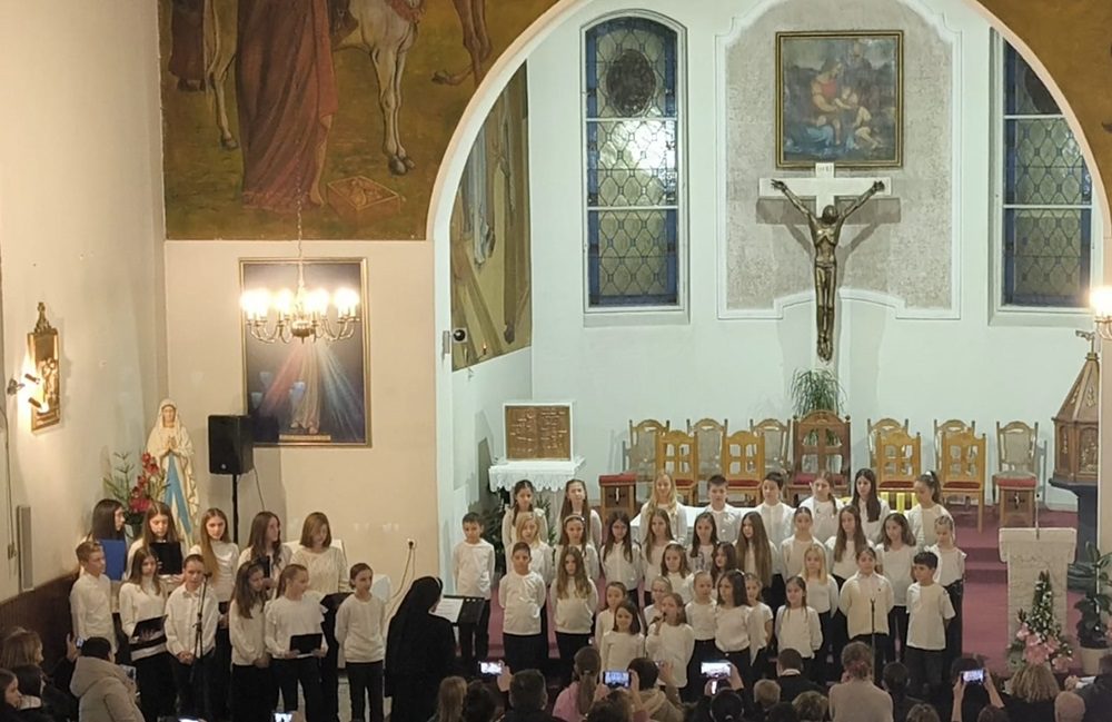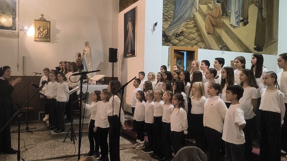 Prvi je pod vodstvom s. Jelice Dolić nastupio Dječji župni zbor Čaraobne frulice, izvevši tri skladbe: Gospod je pastir moj kanon, Život s Isusom don Ivana Marčića, te Hvalite i blagoslivljate Damira Šimunovića.