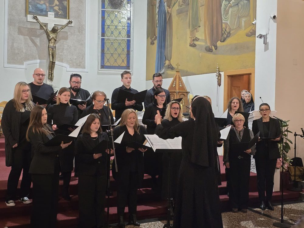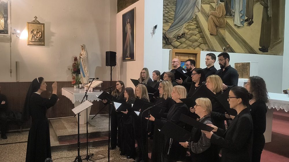 Nakraju je nastupio Mješoviti zbor Marijan Mihelčić pod ravnanjem s. Jelice Dolić i orguljaškom pratnjom Jelice Bojić. Zbor je izveo Ave, Maria Jakoba Arcadelta a capella, potom Slavite Gospoda Ive Perana te Slava ti, Kriste, Bože naš G. F. Händela iz Oratorija Juda Makabejac.
